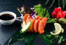 120/50/20 г • лосось п/ф, дайкон п/ф, шисо , васаби, лимон, цветы микс, соевый, микро горох, имбирь